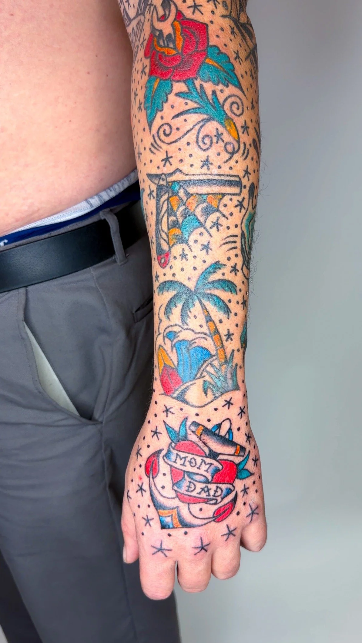 Patchwork SleevesEach piece I create is unique and drawn with respect for the classic traditions of tattooing. Whether it's a large piece or something smaller, every tattoo I do has a personal touch and is tailored to fit what you're looking for. At my tattoo shop, the focus is always on making bold, clean work that holds up over time. I'm proud to run a tattoo shop where clients feel welcome, understood, and excited to wear their ideas forever.