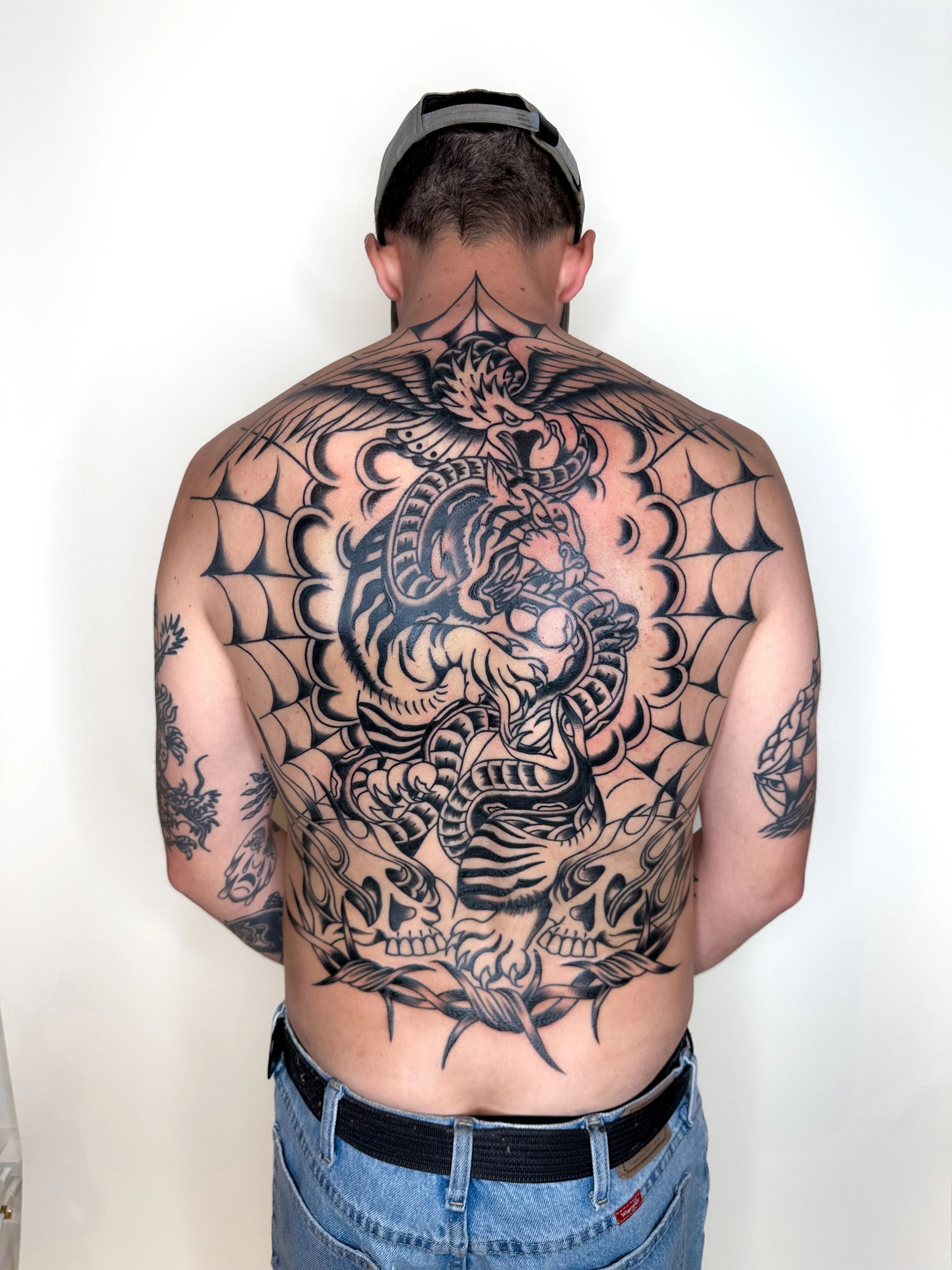 Patchwork SleevesEach piece I create is unique and drawn with respect for the classic traditions of tattooing. Whether it's a large piece or something smaller, every tattoo I do has a personal touch and is tailored to fit what you're looking for. At my tattoo shop, the focus is always on making bold, clean work that holds up over time. I'm proud to run a tattoo shop where clients feel welcome, understood, and excited to wear their ideas forever.